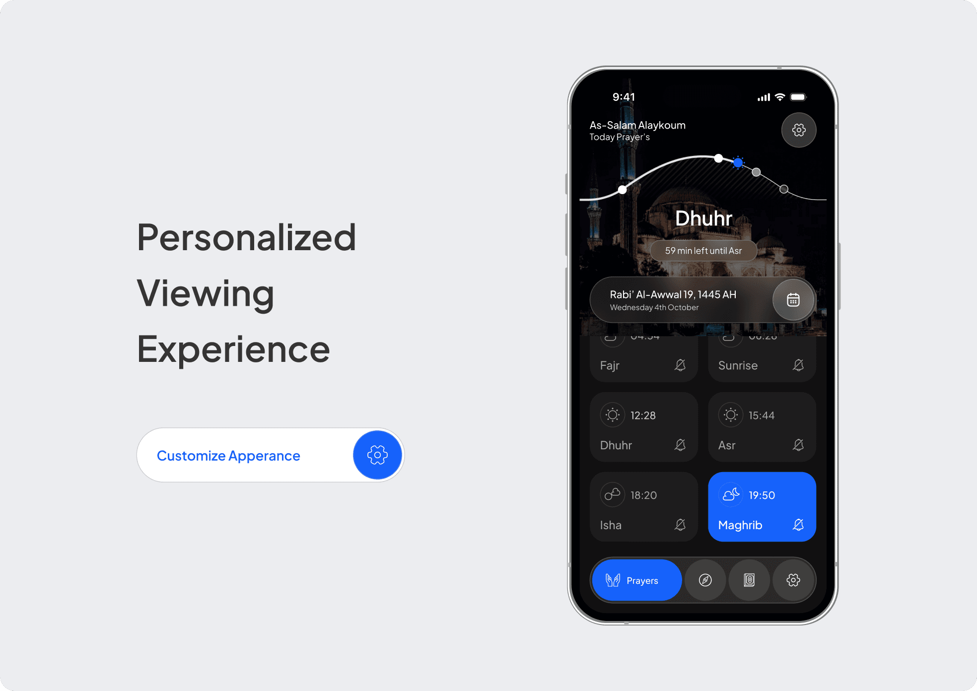 A modern Islamic mobile app designed to unify prayer times, Qibla direction, Quran reading, and personalization into one seamless and spiritually focused digital experience.