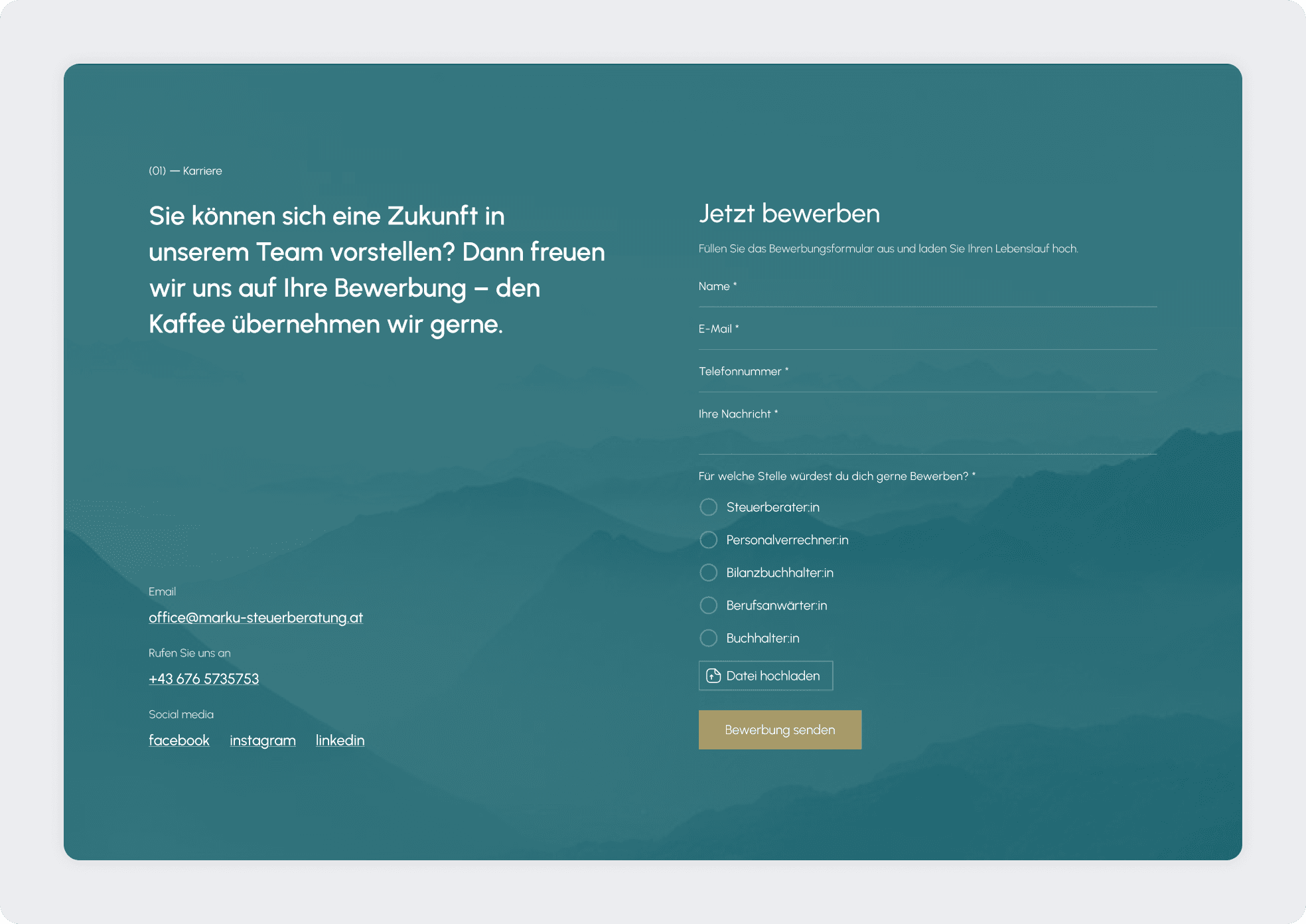 The final result is a structured and professional digital platform that strengthens brand credibility and improves client accessibility. Marku Steuerberatung now benefits from a modern online presence that clearly communicates expertise while guiding visitors toward consultation. The redesign enhances usability, reinforces trust, and establishes a scalable foundation for future content expansion and service growth.